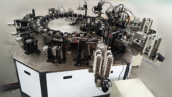 主機為三十工位間歇傳動機構(gòu),產(chǎn)量為1000-1200支/小時左右。自動上芯柱,自動定位,自動理絲、自動切燈板,自動上絲,焊接,檢測,下料。
